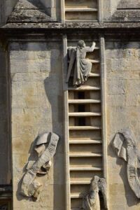 (Left: Relief sculpture on Bath Abbey, UK, of angels climbing up Jacob’s Ladder.)