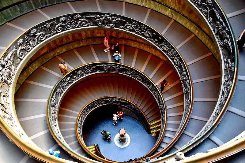 And probably the most famous spiral staircase in the world can be found in the Vatican Museums, called the Bramante Staircase after the Renaissance architect who designed the prototype for this structure (image below).