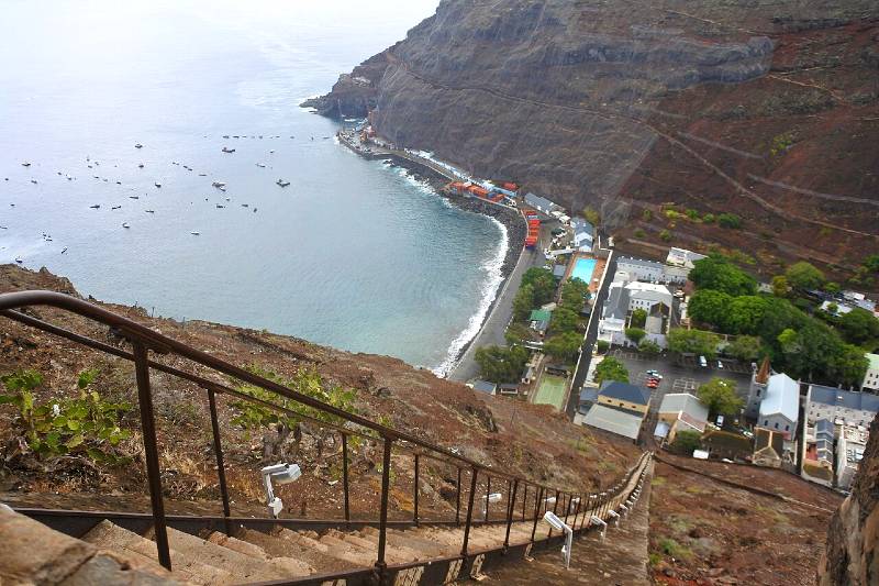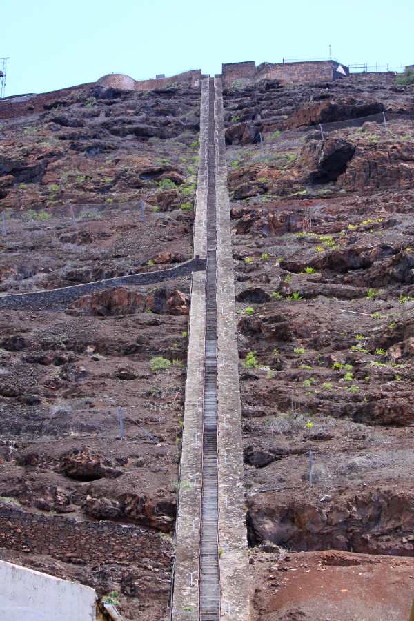 Another natural staircase (with a little help from man’s chisel) is the 699-step climb called Jacob’s Ladder on the island of St. Helena in the middle of the Atlantic Ocean. It was built in the 1820s as a railway to haul materials from the capital city of Jamestown up the mountain to the fort at the top.