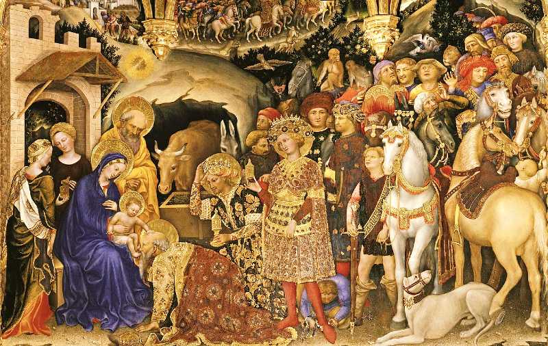 I particularly love those images from the Medieval and Renaissance eras which depict the Magi bowing down before the Baby and kissing His little feet as shown in my favorite image of the Magi by Gentile da Fabriano (1423 AD). Don’t you love the Baby Jesus placing His little hand on Melchior’s bald head?!