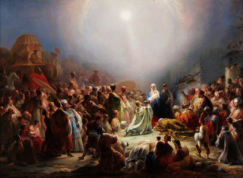 And this image by Portuguese artist, Domingos Sequeira (1768-1837) is nothing short of breathtaking (notice the prostrated Magus to the right of center, in the brown robe):
