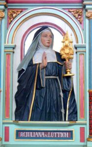 In the 13th century, a Belgian nun, St. Juliana of Liège (1192-1258), received a mystical vision of a moon with a dark spot in it. Jesus told her that one important feast was missing from the Church’s calendar just like the moon was unable to give off its full glow in the vision. St. Juliana spent the rest of her life promoting the worship of the Body and Blood of Jesus in the Eucharist.